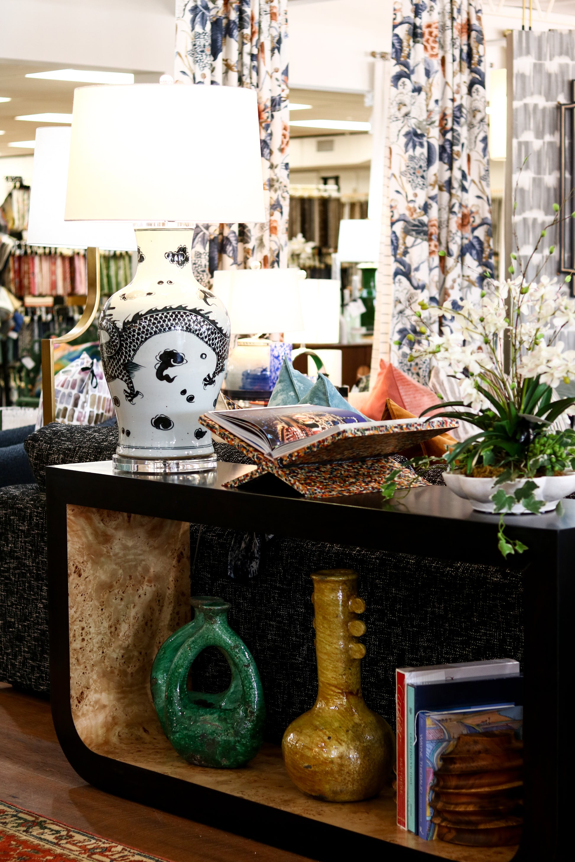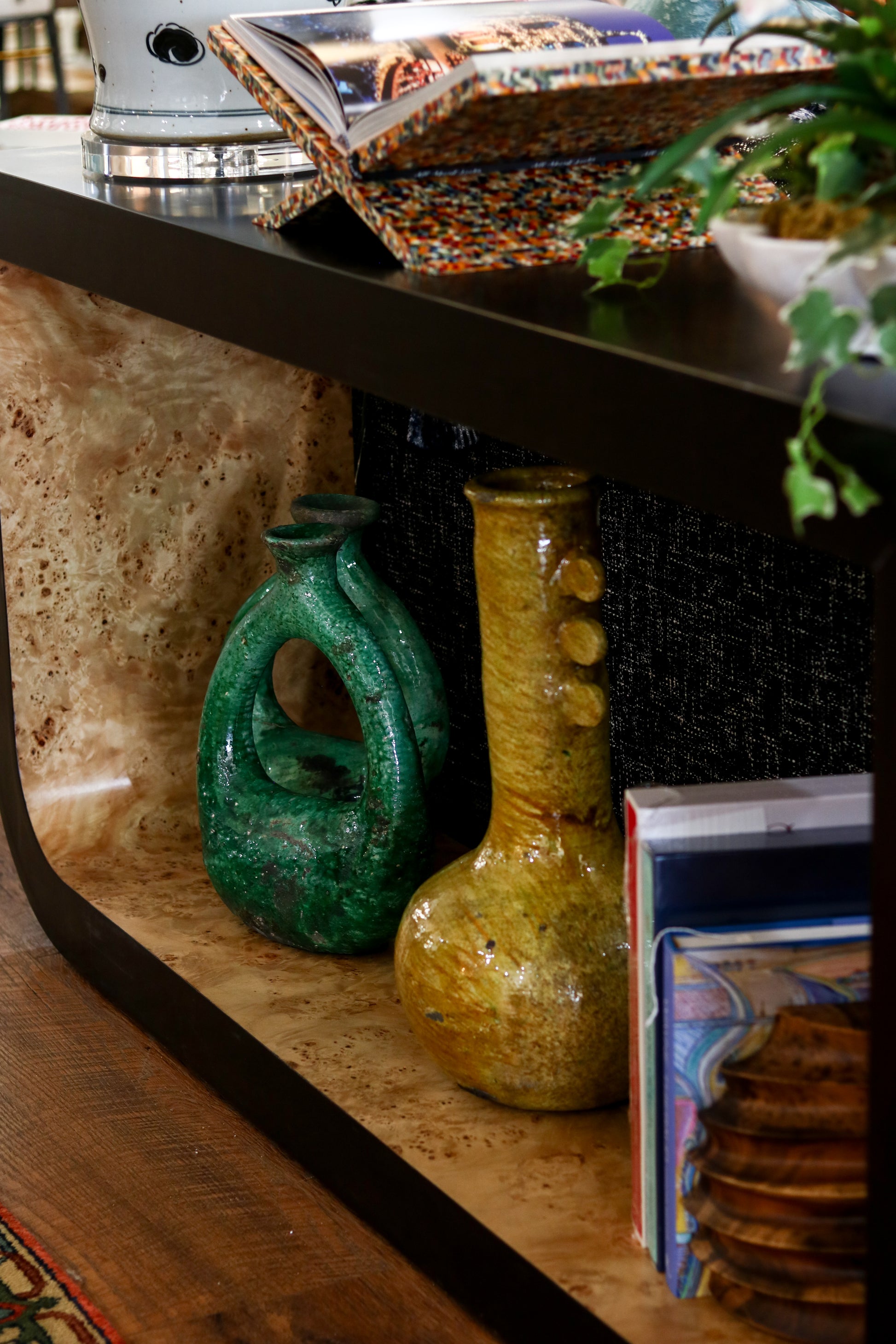 Black & Burl Wood Console Table