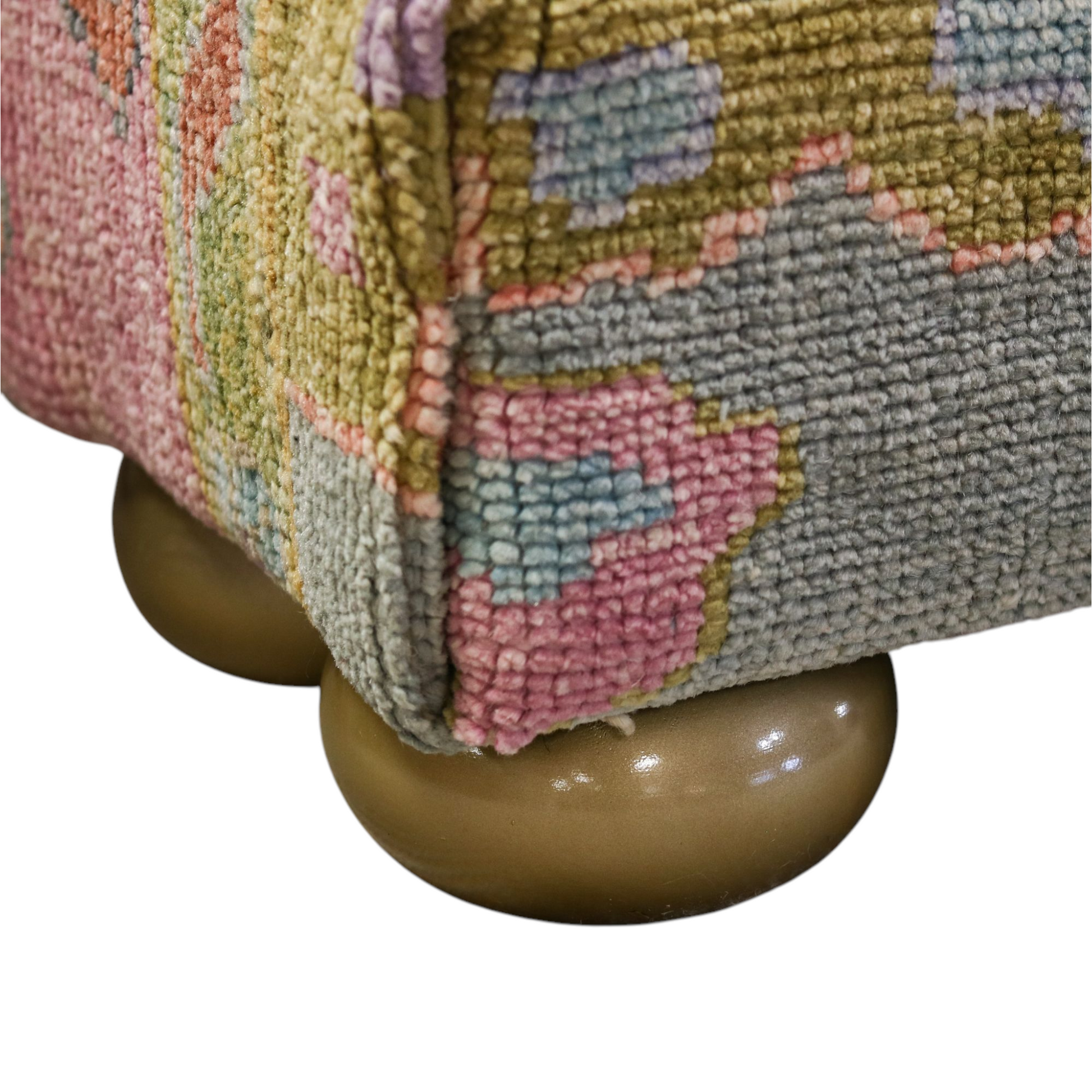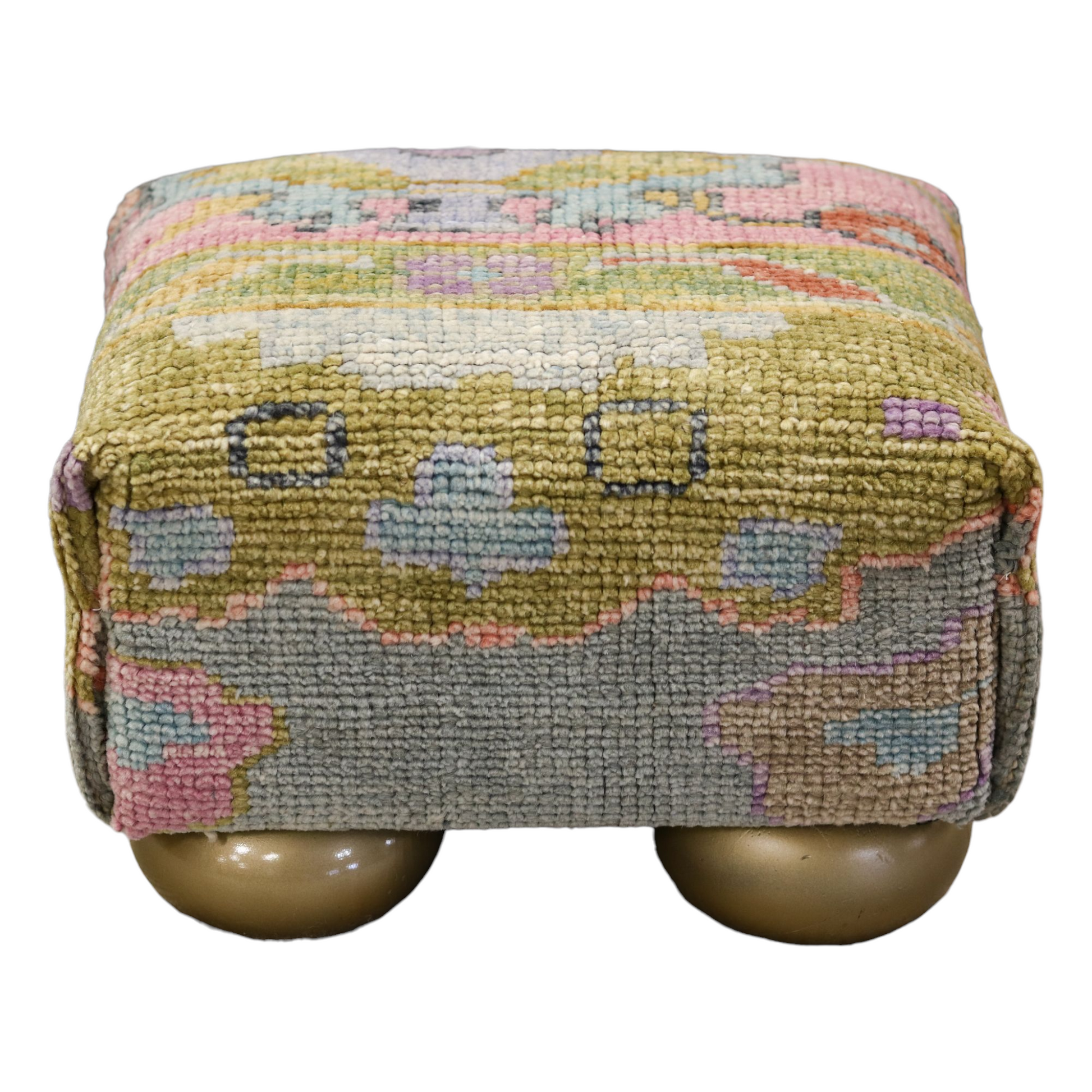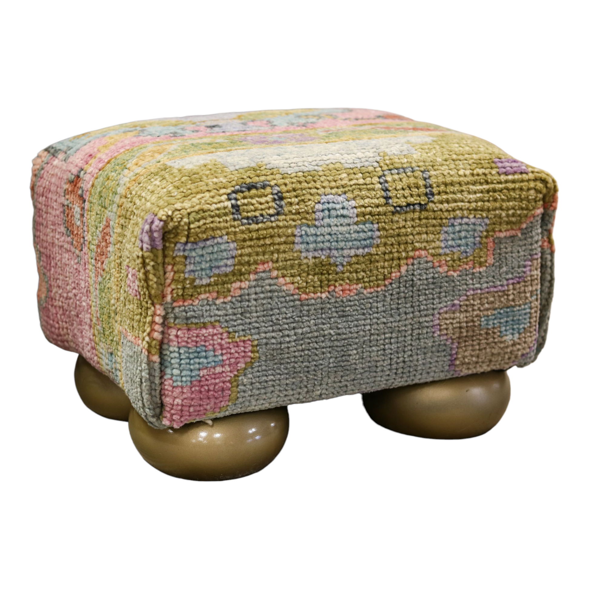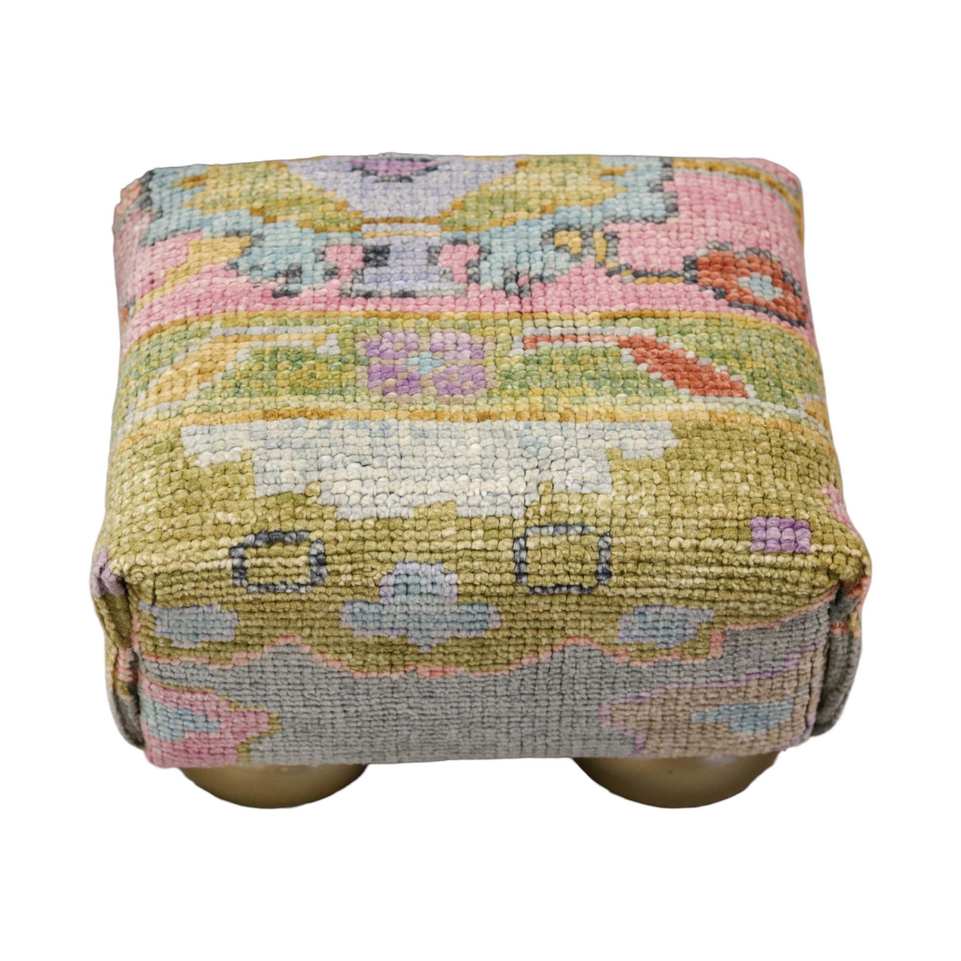Oushak Rug Upholstered Tiny Ottoman