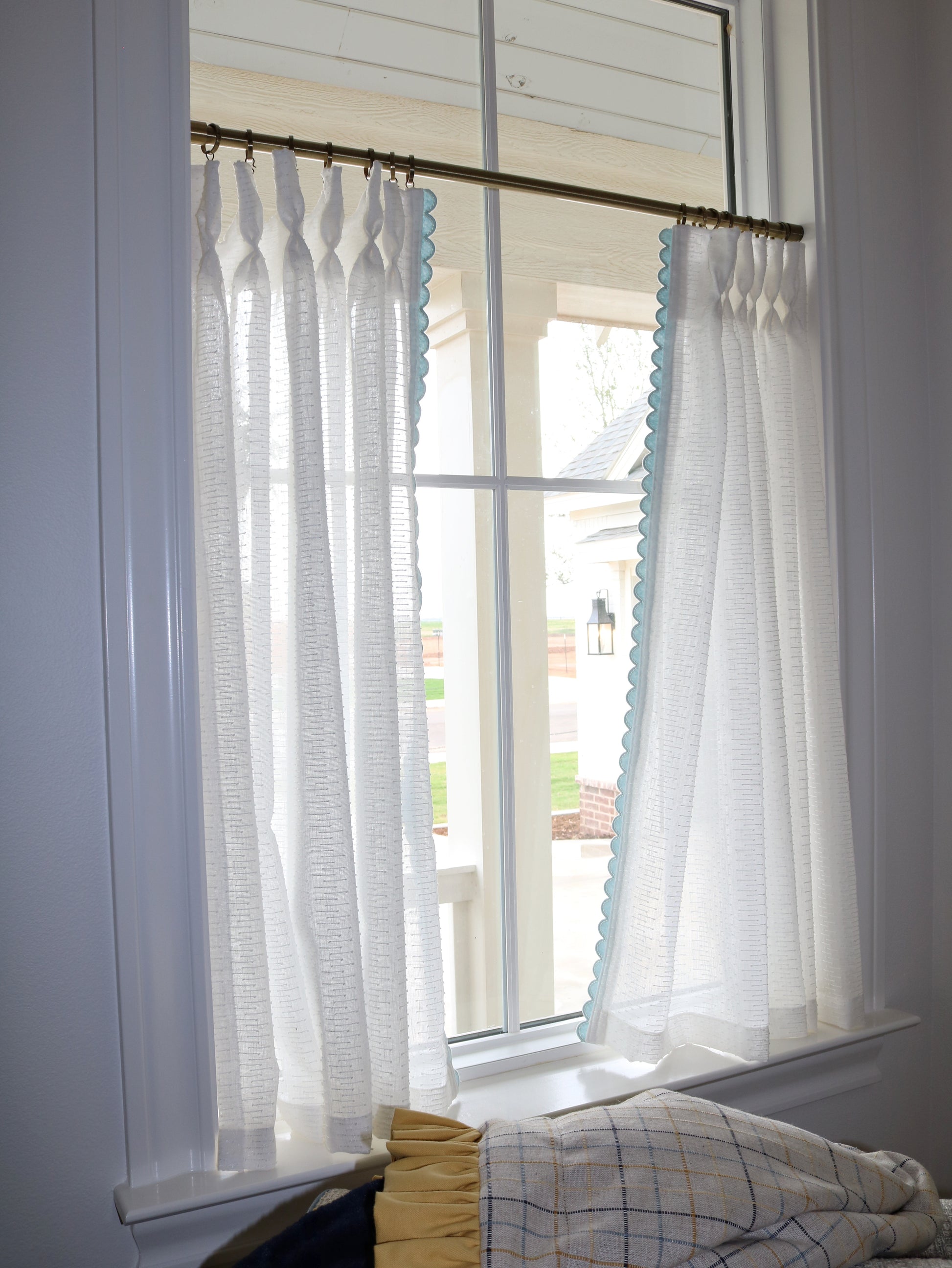 Sheer Cafe Curtain Set w/ Blue Trim